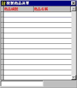 | 商品編號 | : | 每件商品都會有自己的編號,系統不會允許使用者建立相同編號的商品。注意商品編號最長十六個位。 | | 商品名稱 | : | 每件商品都必需要有個名稱,主要是方便辨認。商品名稱是有限長度的,如遇商品名稱長度不足,可在備註欄輸入。 | | 服務性商品 | : | 在銷貨過程中有時會有一些費用類別的交易,為方便管理,本系統提供服務性商品設定。如加工費用、運輸費用及維修費用等,可以設定為服務性商品,便不需要計算倉量及成本。 | | 廠商編號 | : | 生產商的商品編號。 | | 廠商定價 | : | 生產商的定價或最近進貨價。 | | 單位一 | : | 商品基本單位。 | | 價格一 | : | 商品基本單價。 | | 單位轉換率 | : | 建立商品時使用者可為商品設定兩個單位,方便交易商品時可切換單位選擇。 | | 單位二 | : | 商品第二單位。 | | 價格二 | : | 商品第二單位單價。 | | 現有數量 | : | 簡稱"現量",現有商品總數量,包含各倉庫數量。由銷貨、進貨、退貨及調整單自動計算。 | | 最近進貨日 | : | 最近一次進貨日期,由進貨單自動更新。 | | 最近銷貨日 | : | 最近一次銷貨日期,由銷貨單自動更新。 | | 商品類別一 | : | 商品第一種分類,按使用者運作自行設定。 | | 商品類別二 | : | 商品第二種分類,按使用者運作自行設定。 | | 商品類別三 | : | 商品第三種分類,按使用者運作自行設定。 | | 商品類別四 | : | 商品第四種分類,按使用者運作自行設定。 |